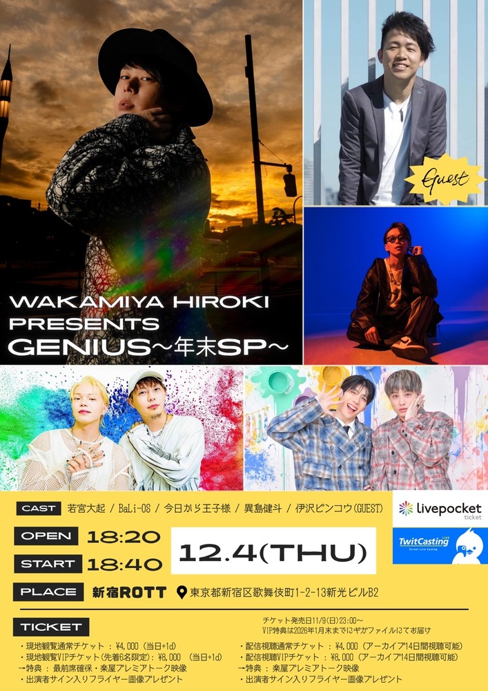 料 金: 一般4,000円/VIP8,000円(限定6席)(各+ドリンク)/配信一般4,000-/配信VIP8,000(+システム料)